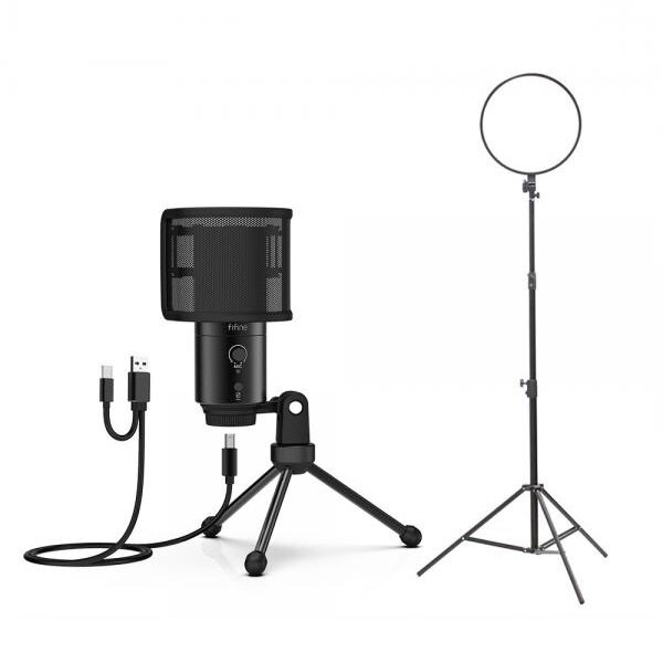[FIFINE] PC 스마트폰 겸용 마이크 조명 개인방송 장비 세트 E 온라인 수업 씨타입 룩스패드 알패드 FIFINE K433A