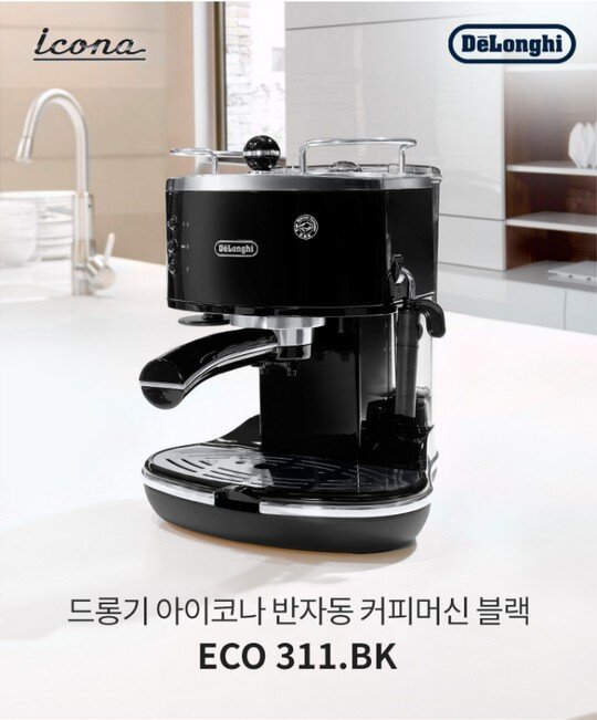 [드롱기] 아이코나 반자동 커피머신 블랙 ECO311.BK