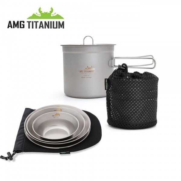 [AMG티타늄] 코펠(1L/케이스포함) 신형 접시(4ps/케이스포함) SET