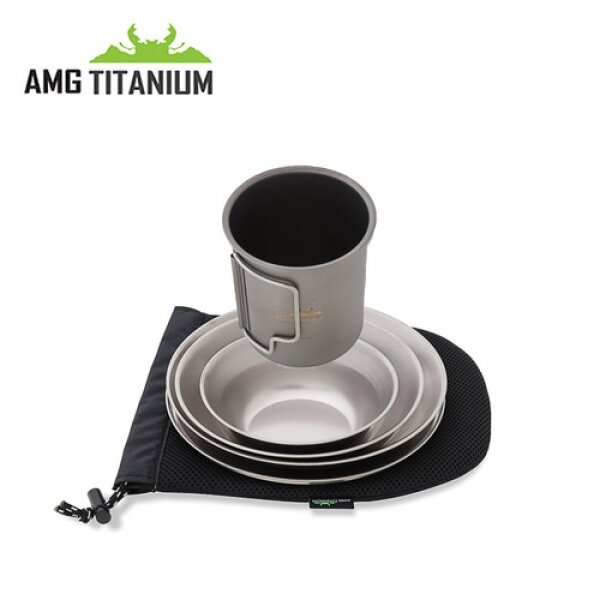 [AMG티타늄] 샌딩 접시세트(4ps/케이스포함) 싱글컵(450ml) SET