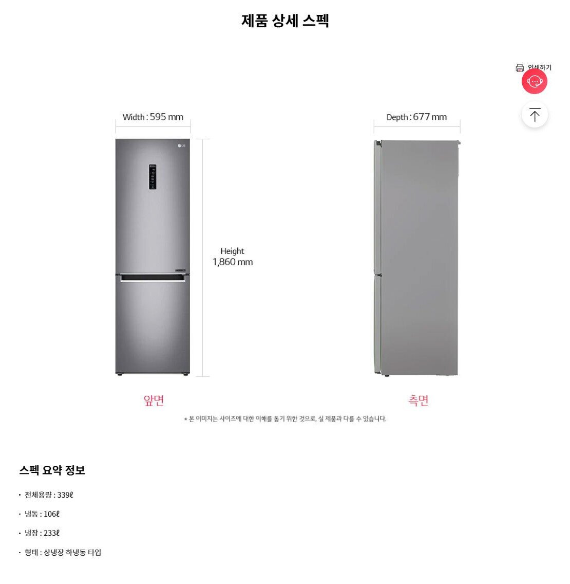 [LG전자] 일반냉장고 2도어 상냉장 339L [샤인/M341S34]