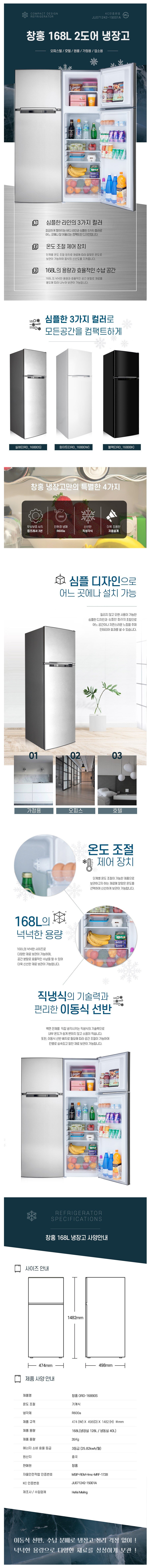 [오리온창홍] 창홍 168L 2도어 냉장고 화이트 ORD-168B0W
