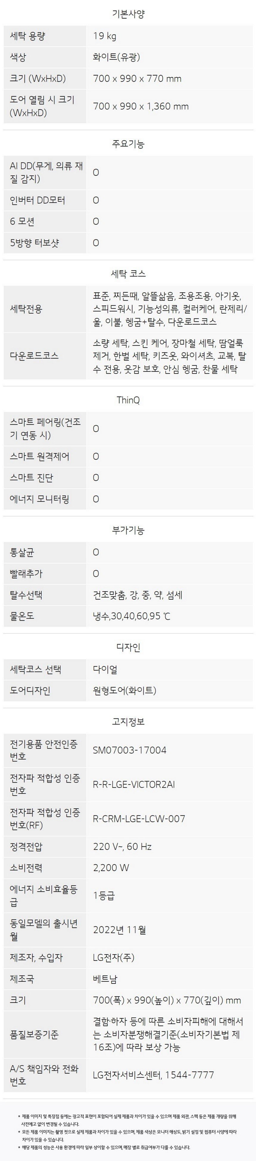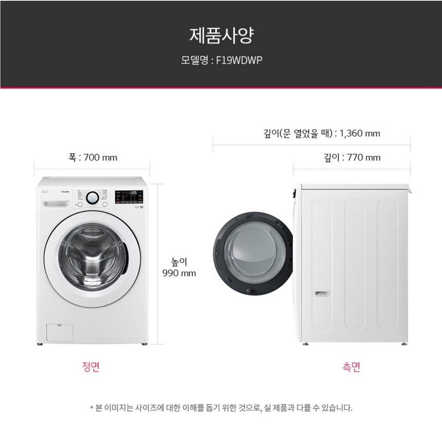 [LG전자] TROMM(트롬) 드럼세탁기 F19WDWP 19kg