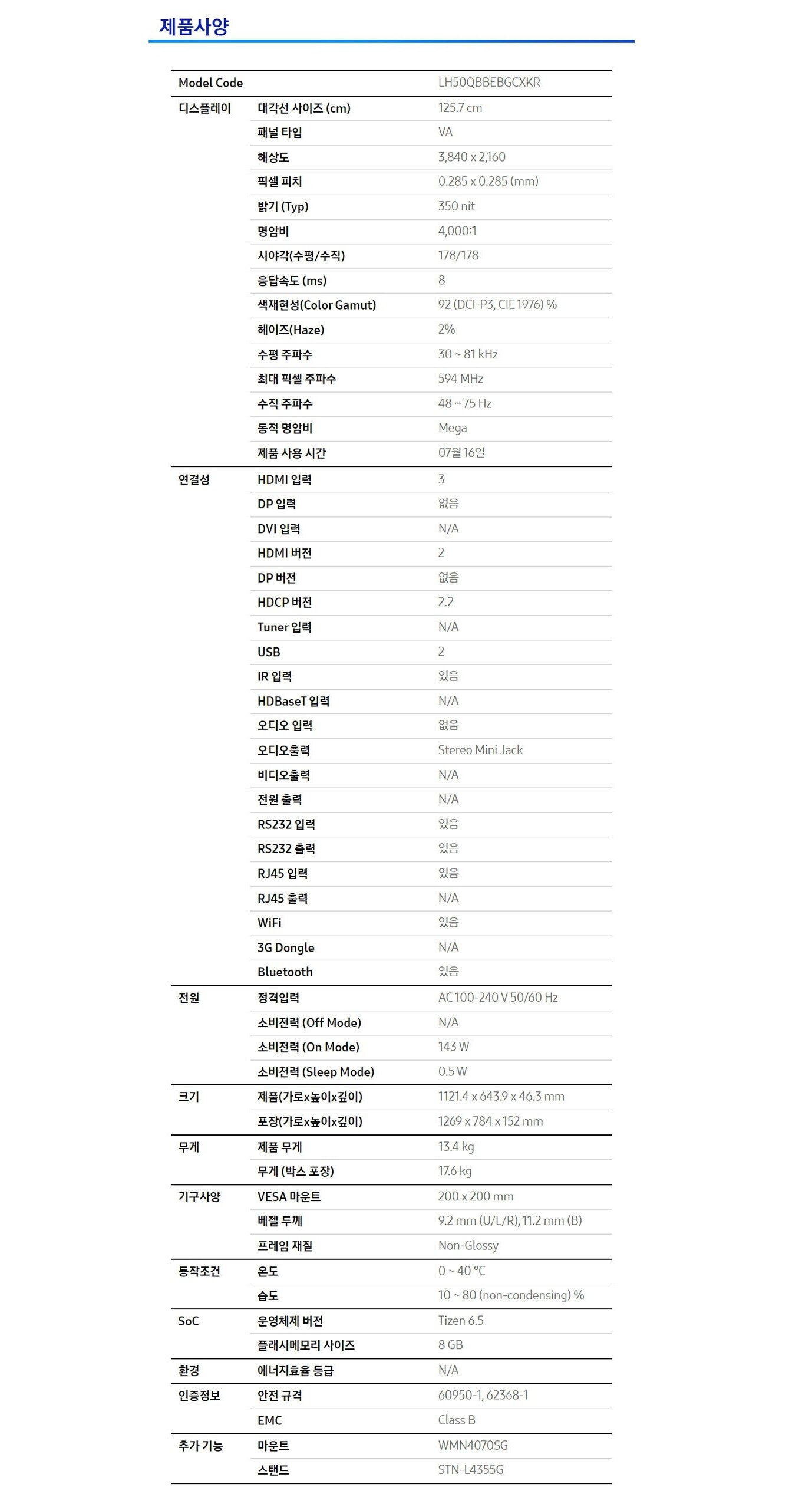 [삼성전자] 4K UHD 51인치 사이니지 TV 모니터 LH51QBBEBGCXKR 세로 벽걸이형