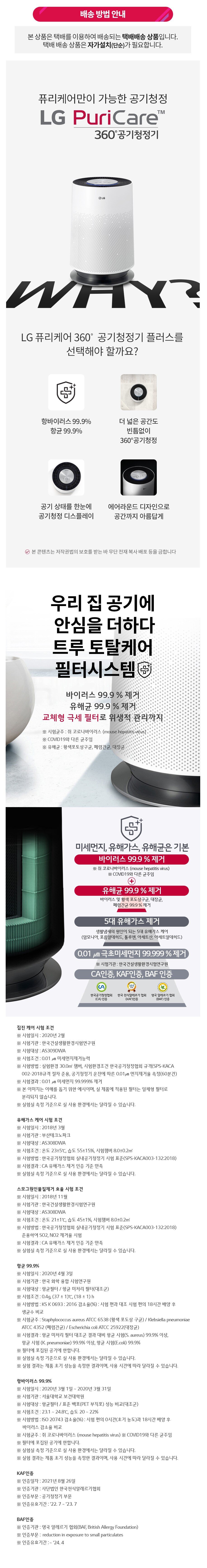 [LG전자] 퓨리케어 360˚ 1단 공기청정기 54.5㎡(16평형) [크리미스노우/AS171DWFC]