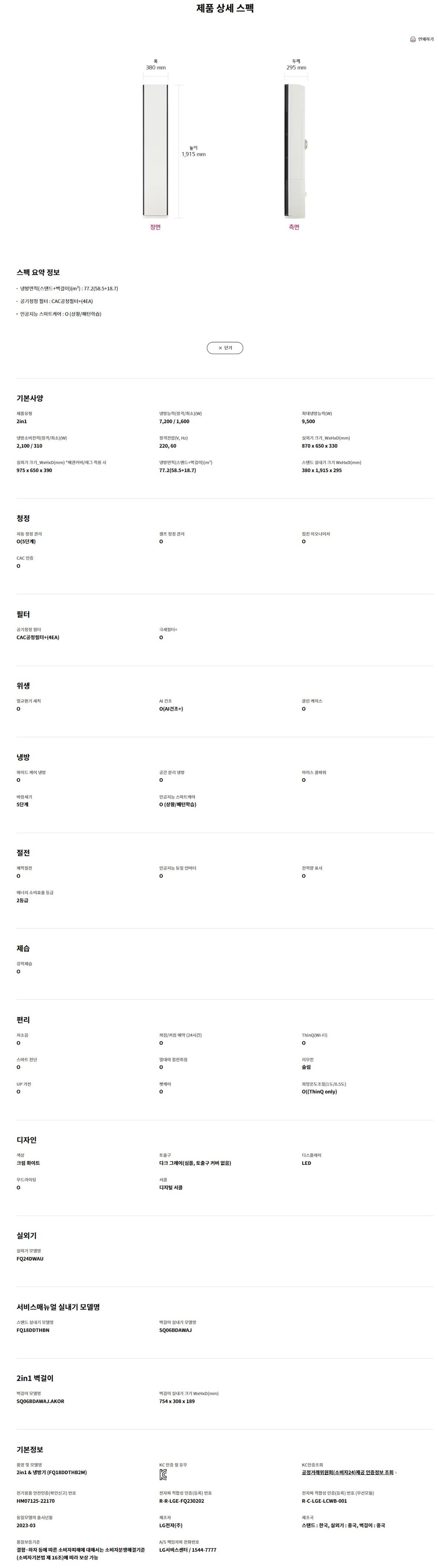 [LG전자/FQ18DDTHB2M] 멀티형에어컨 18+6형(매립환경) 23년형 타워디럭스2 크림화이트/전국.기본설치무료