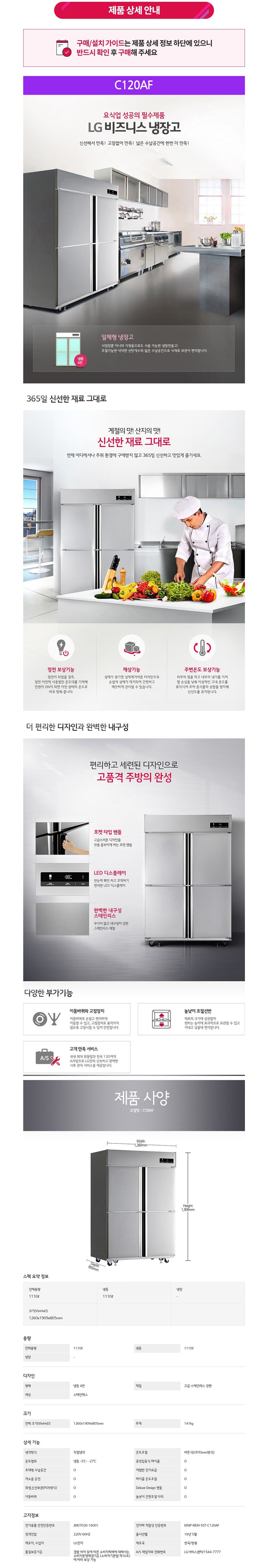 [LG전자] 업소용냉동고 C120AF 비즈니스냉동고 냉동4칸 1110L