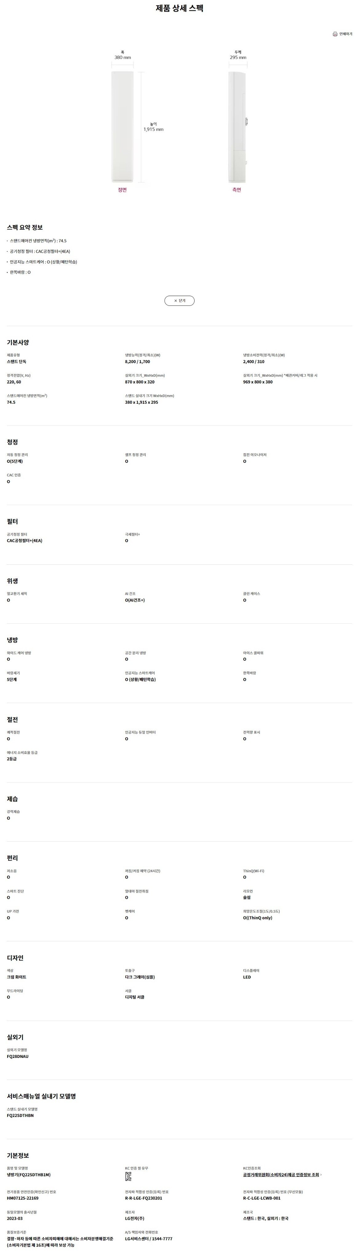 [LG전자/FQ22SDTHB1M] 스탠드에어컨 22형(매립환경) 23년형 타워스페셜2/크림화이트/전국.기본설치무료