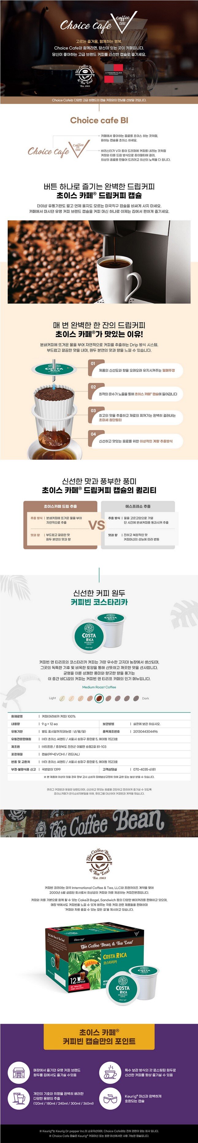 [초이스카페] 커피빈 코스타리카 큐리그호환 캡슐커피 12EA