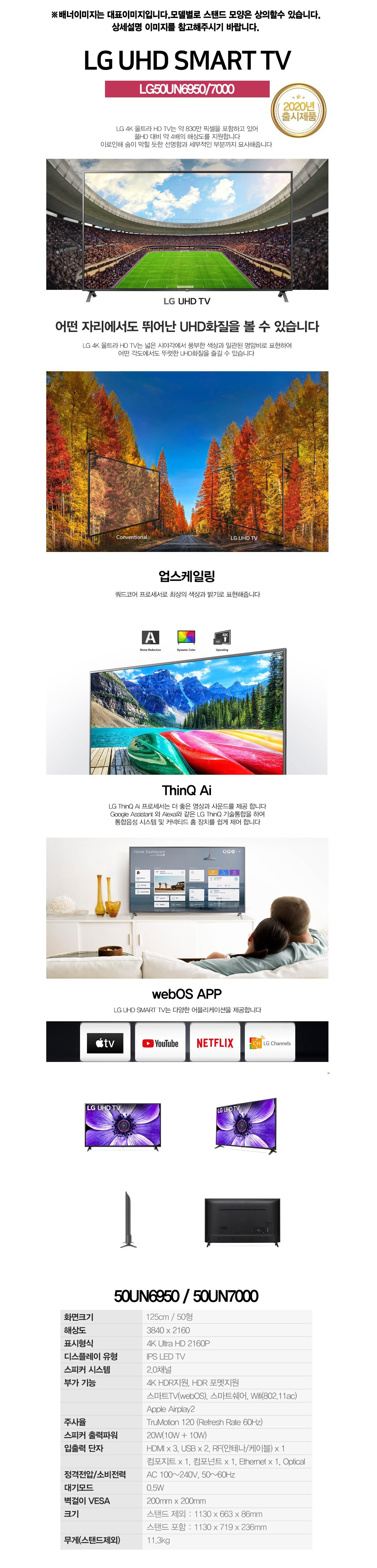 LG전자 50인치 UHD 4K 유튜브 넷플릭스 스마트TV 50UN6950 미사용리퍼