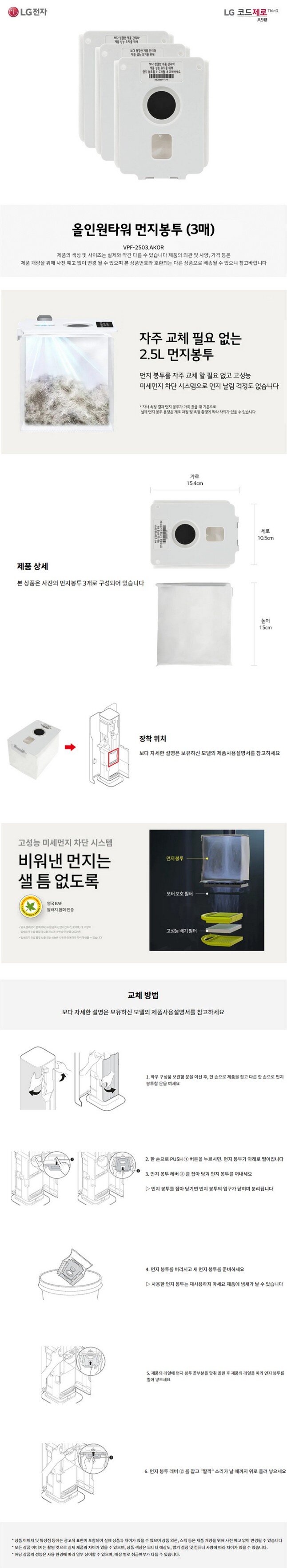 [LG전자] 코드제로 A9/A9S호환 올인원타워 전용 먼지봉투 VPF-2503 [1BOX 3매]