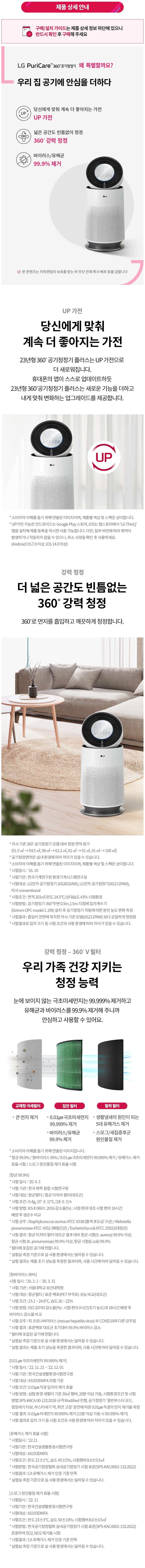 [LG전자] 퓨리케어 360° 1단 공기청정기 플러스 UP [크리미스노우/AS193DWFA]
