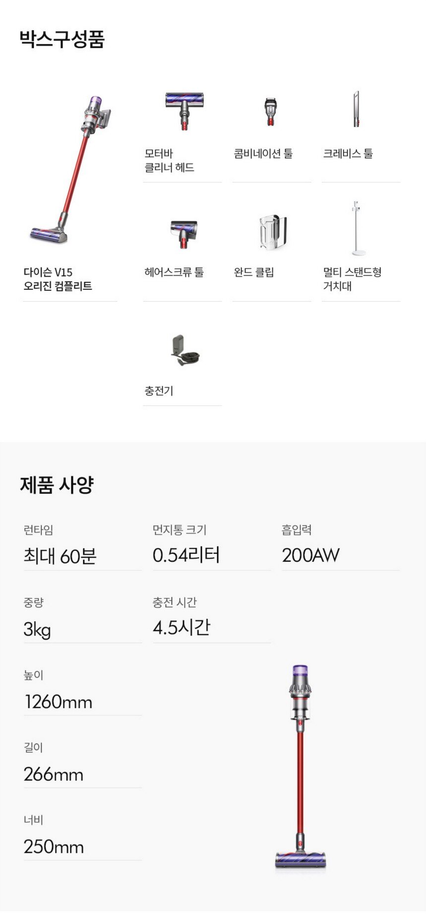 다이슨 V15 오리진 컴플리트(니켈/레드)