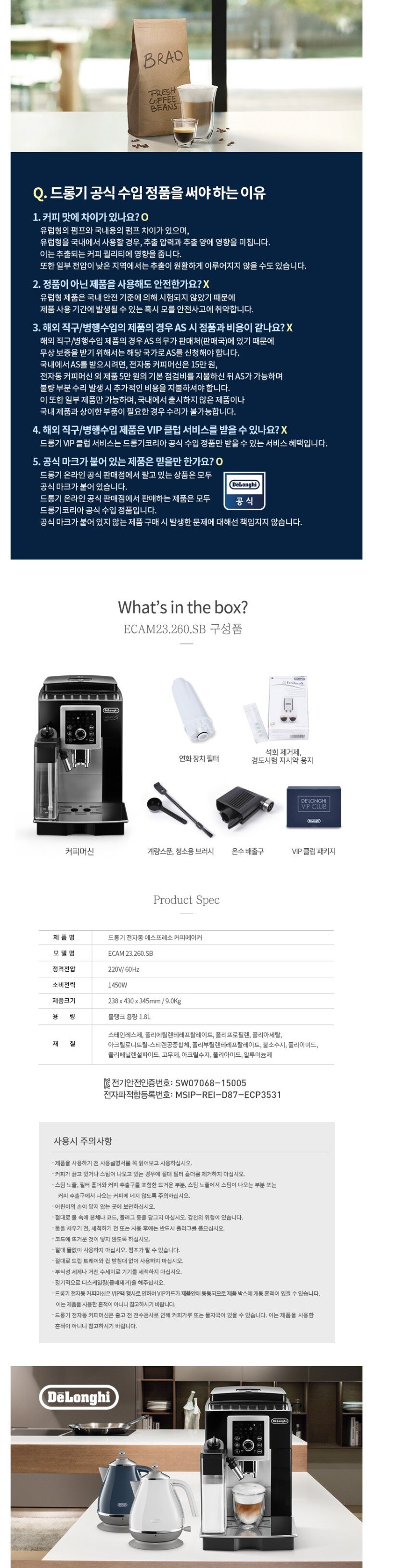 [드롱기] 전자동 에스프레소머신 ECAM23.260.SB