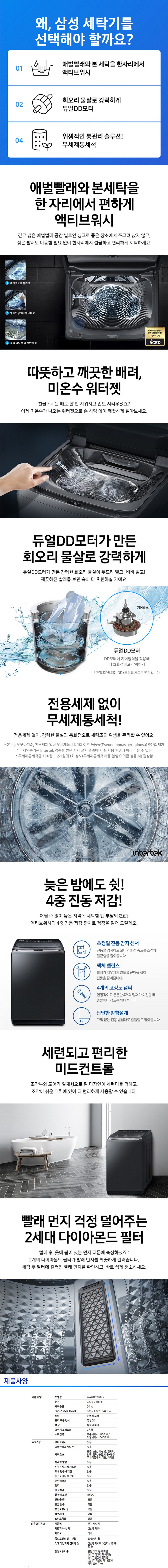[삼성전자] 삼성 WA20T7870KV 일반세탁기[20KG/듀얼DD모터/4중진동저감/다이아몬드필터/블랙케비어]