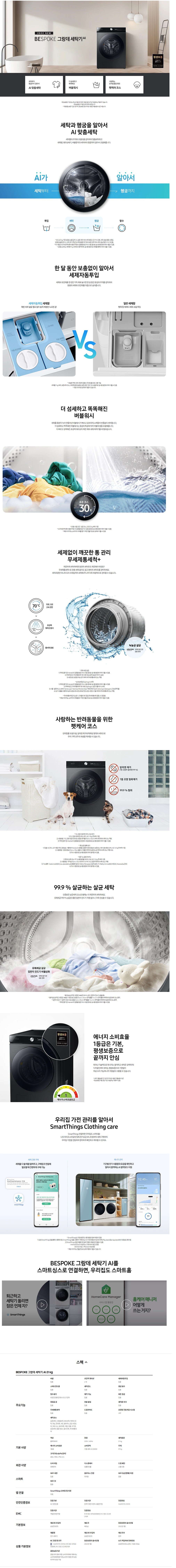 [삼성전자] 비스포크 그랑데 세탁기 AI WF21B2900KV(21kg) 블랙케비어