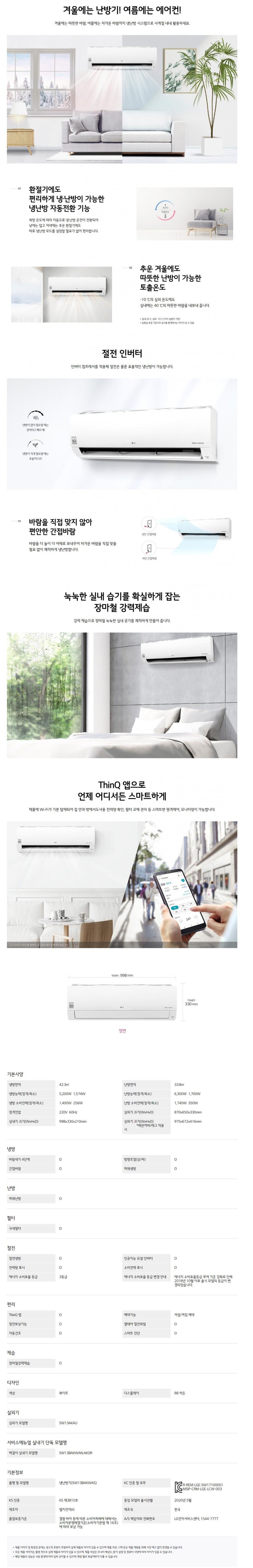 [LG전자/SW13BAKWAS] 벽걸이에어컨 13형 인버터 냉난방기 전국 기본설치포함