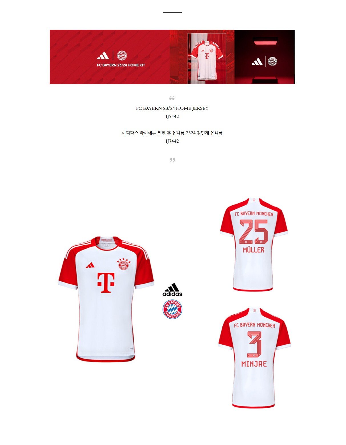 아디다스정품 바이에른 뮌헨 유니폼 저지 홈 2023/24 김민재 마킹 IJ7442