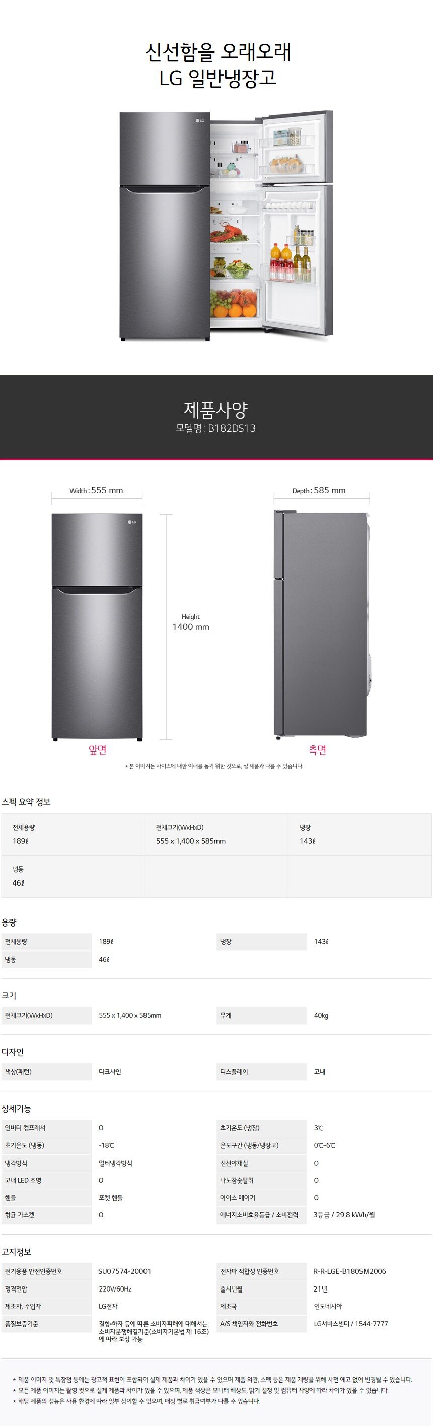 [LG전자] B2B 일반냉장고 2도어 189L [다크샤인/B182DS13]