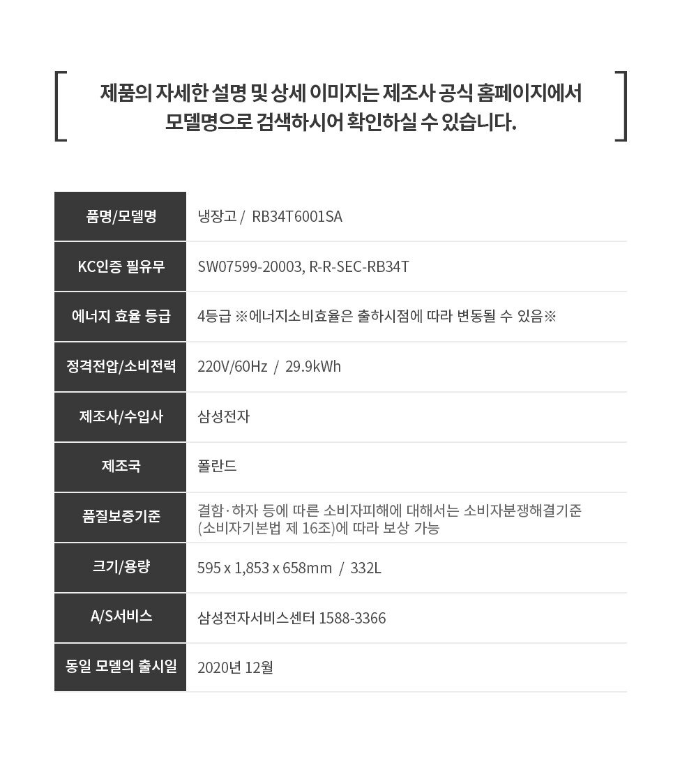 [삼성전자] 삼성전자 일반형냉장고 RB34T6001SA 332L