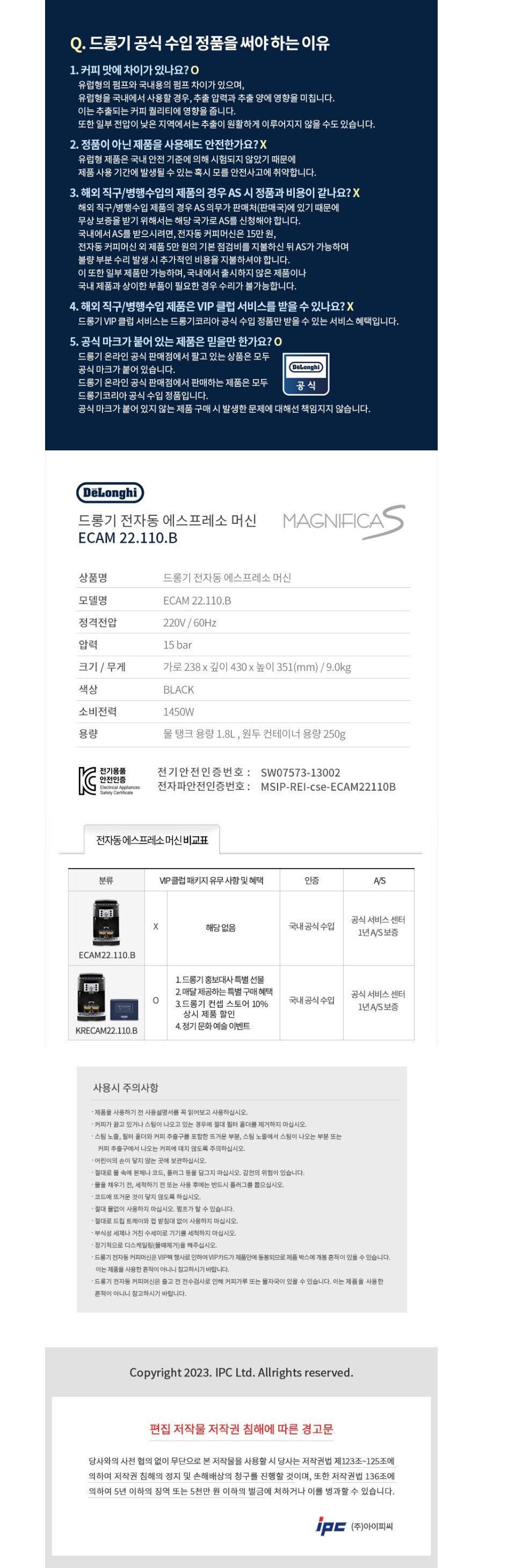 [드롱기] 전자동 커피머신 ECAM22.110.B