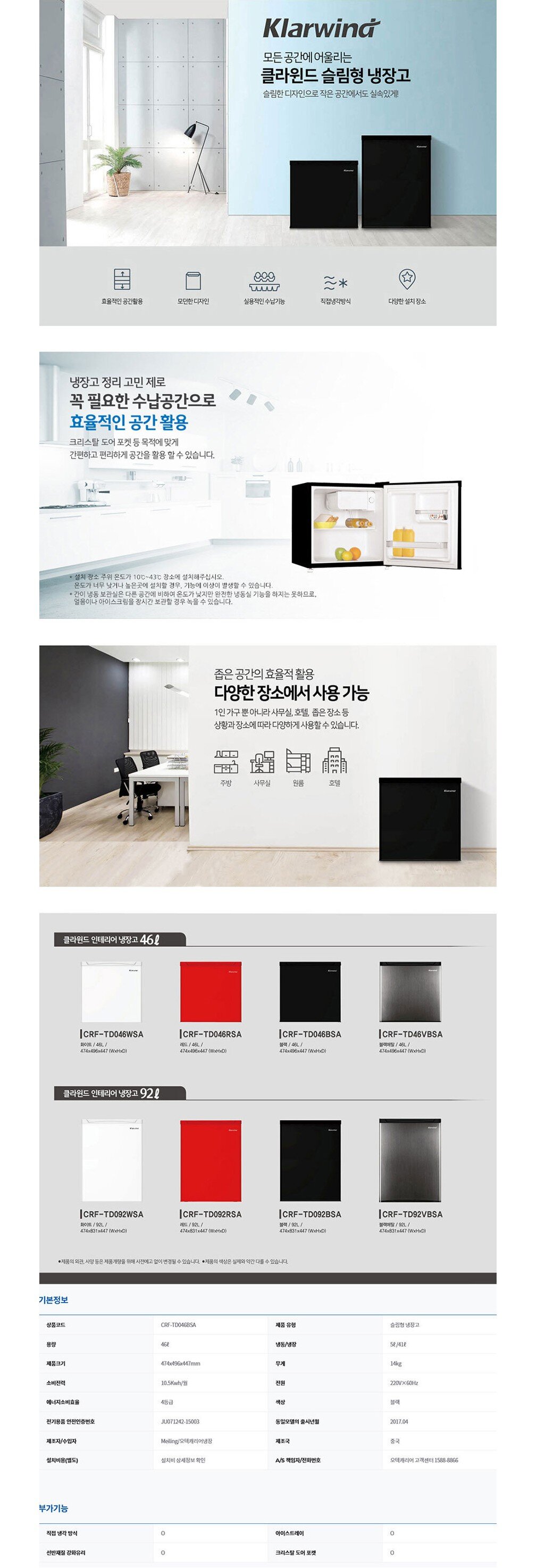 [캐리어] 캐리어공식인증점 클라윈드 슬림형 소형 미니 냉장고 일반냉장고 34L CRF-TD034BSA [전국무료배송]