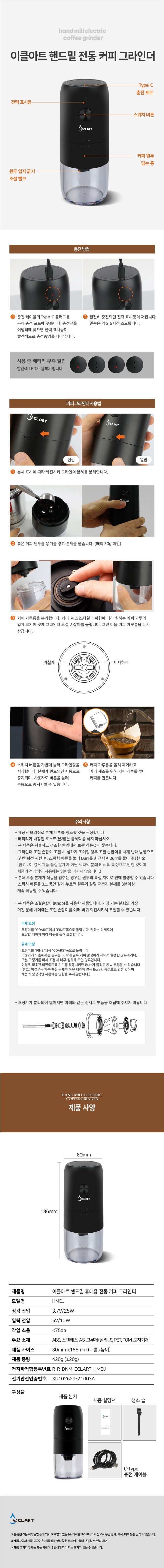 [이클아트] 휴대용 커피그라인더 핸드밀 무선 충전 전동 커피 분쇄기 HMDJ