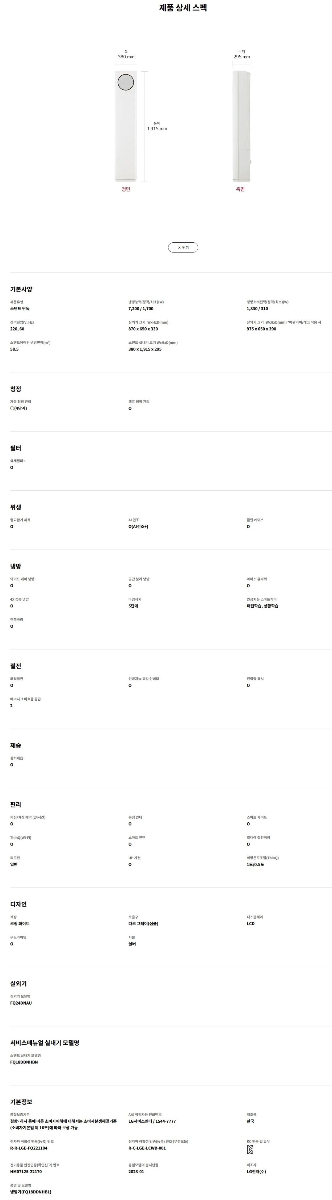 [LG전자/FQ18DDNHB1] 스탠드에어컨 18형(일반배관) 23년형 타워디럭스 크림화이트/전국.기본설치무료