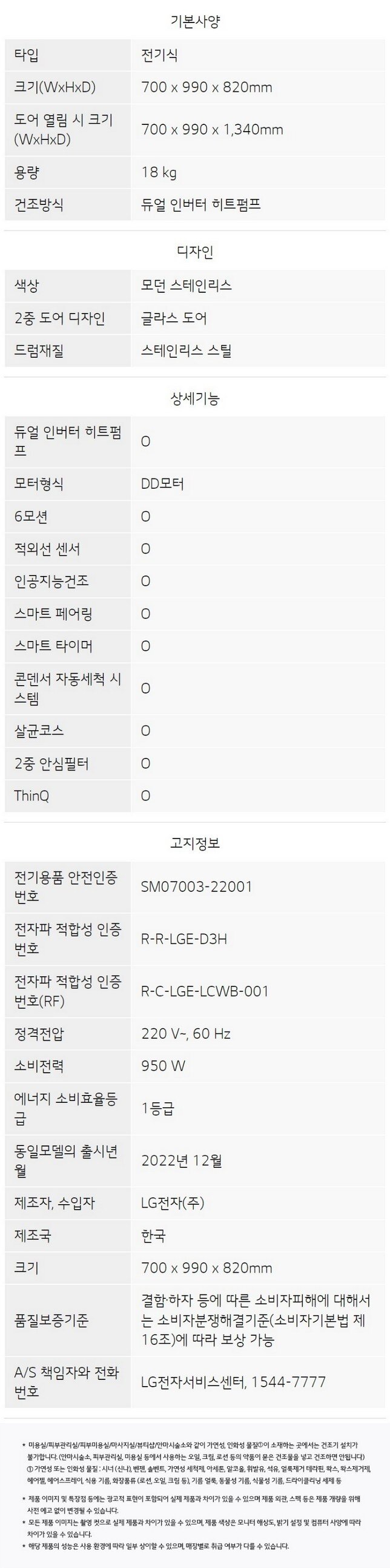 [LG전자] TROMM(트롬) 의류건조기 RH18VTAN 18kg