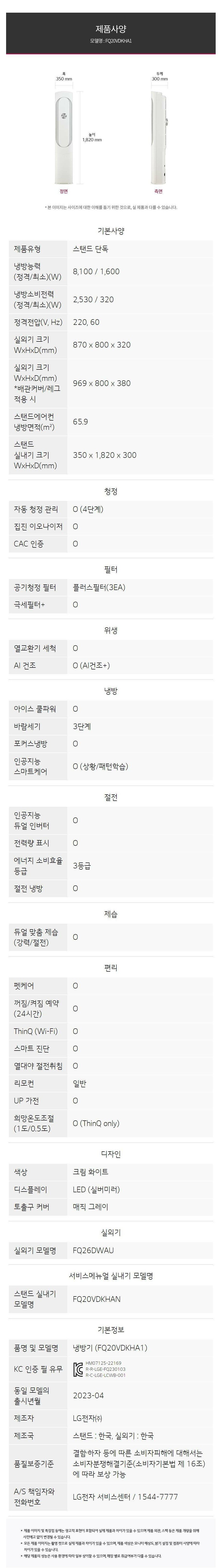 [LG전자/FQ20VDKHA1M] 23년형 스탠드에어컨 20형(매립환경) 칸/청정/전국.기본설치무료