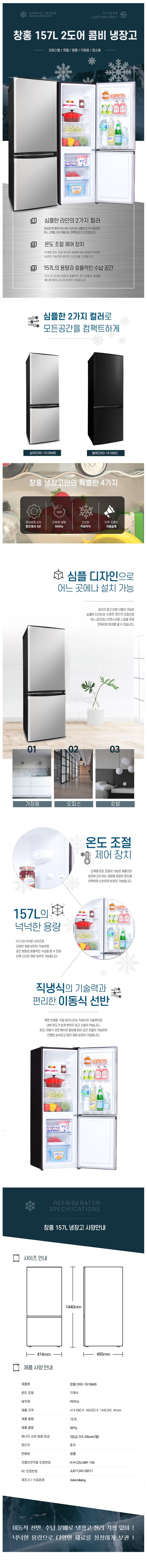 [오리온창홍] 창홍 157L 2도어 콤비 냉장고 메탈실버 ORD-150BMB