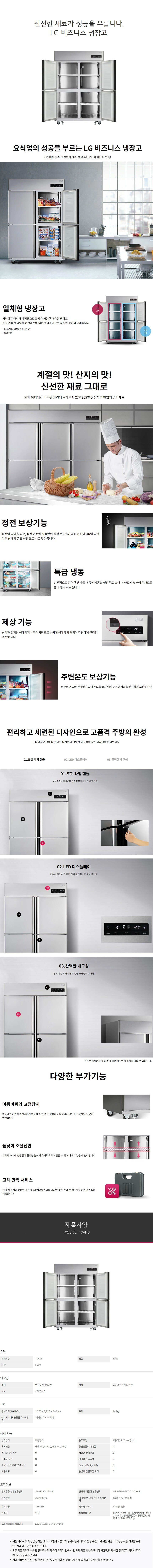 [LG전자] B2B 비지니스 냉장고 냉동2칸+냉장2칸 1060L C110AHB