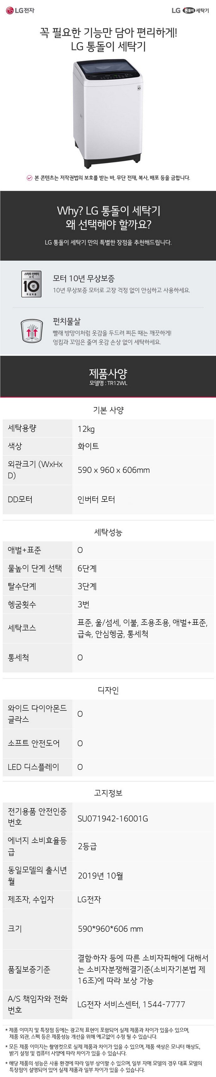 [LG전자] B2B 통돌이 세탁기 TR12WL 12KG