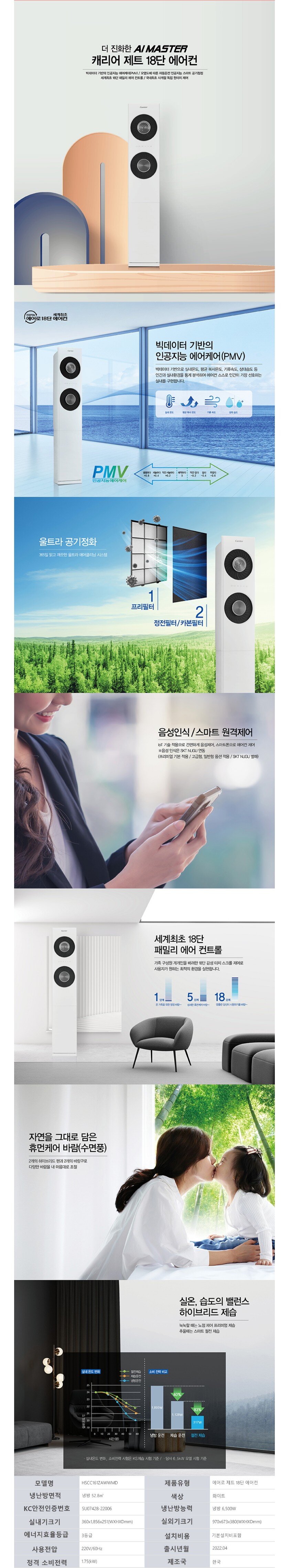 [캐리어/HSCC161ZAWWMD] 22년형 스탠드에어컨 16형 제트 인버터 전국/기본설치무료
