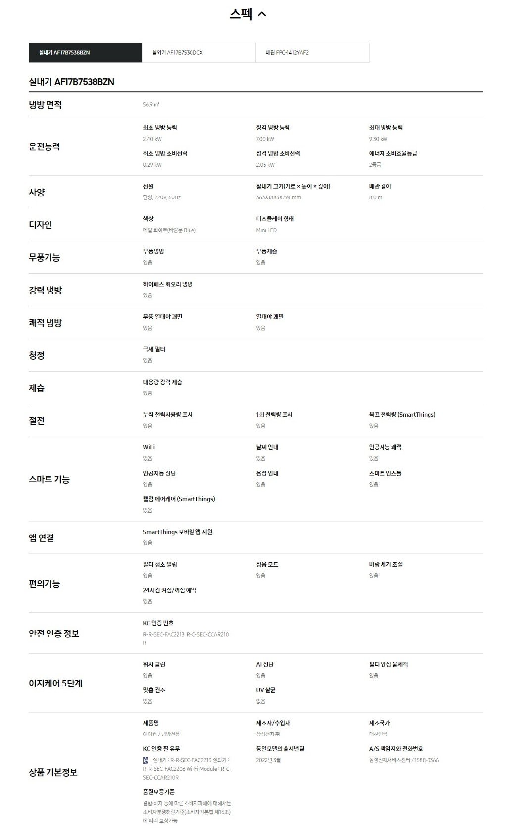 [삼성전자/AF17B7538BZS] 22년형 스탠드에어컨 17형(일반배관) 비스포크 무풍클래식/전국배송.기본설치비포함