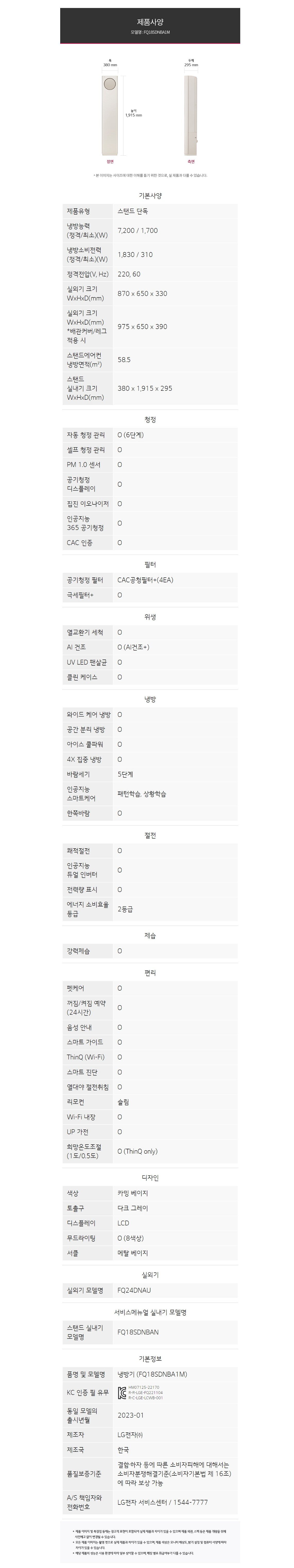[LG전자/FQ18DDNHB1M] 스탠드에어컨 18형(매립환경) 23년형 타워디럭스 크림화이트/전국.기본설치무료
