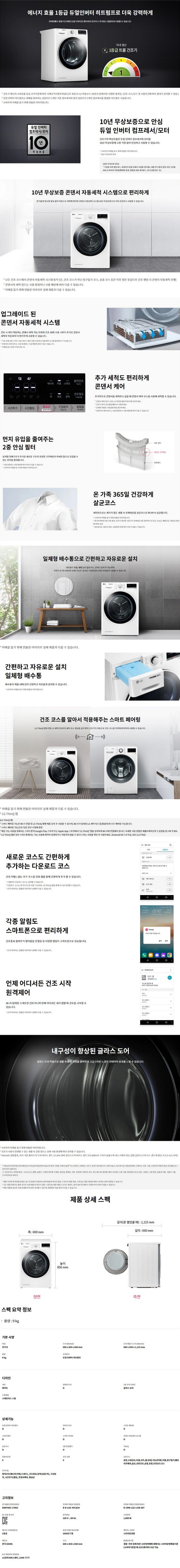 [LG전자] B2B TROMM(트롬) 의류건조기 9kg [화이트/RH9WVWB]