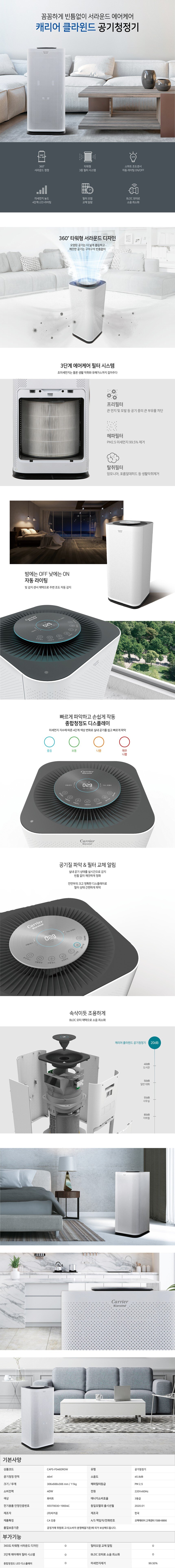 [캐리어] [캐리어] 클라윈드 14평형 공기청정기 CAPS-F046DROW