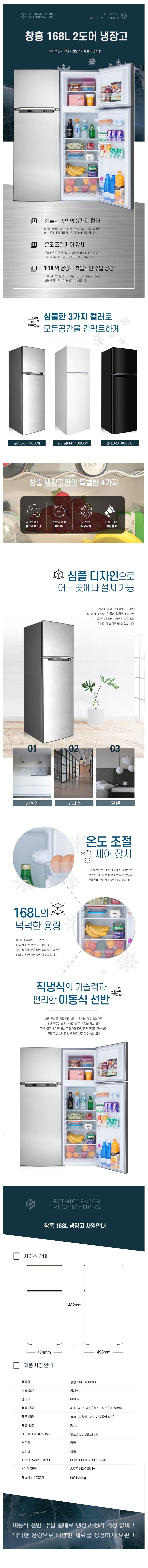 [오리온창홍] 창홍 168L 2도어 냉장고 블랙 ORD-168BBK