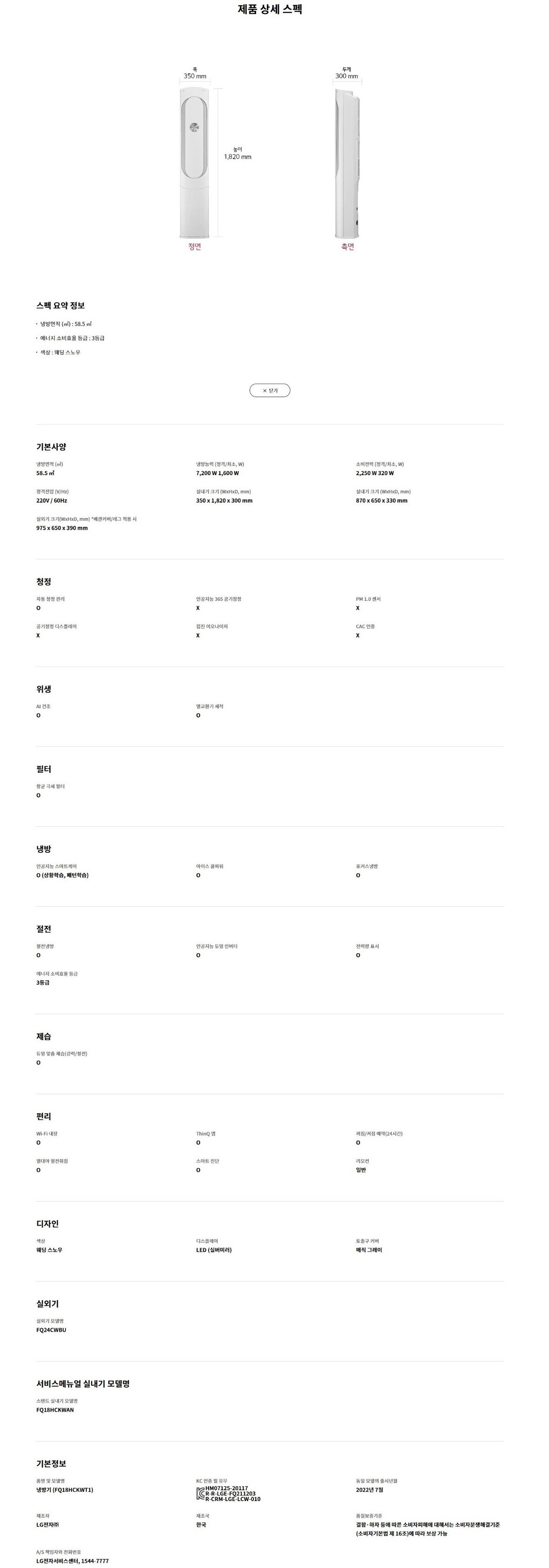 [LG전자/FQ18HCKWT1M] 22년형 스탠드에어컨 18형(매립환경) 칸 전국/기본설치무료