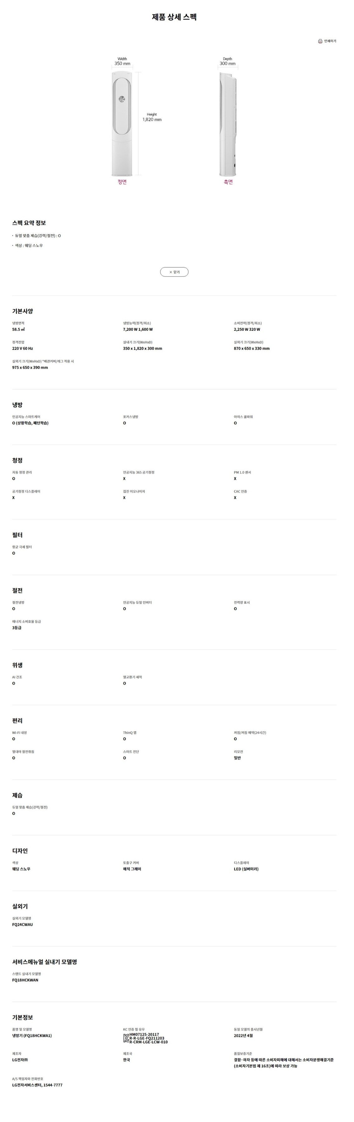 [LG전자/FQ18HCKWA1] 22년형 스탠드에어컨 18형(매립환경) 칸 전국/기본설치무료
