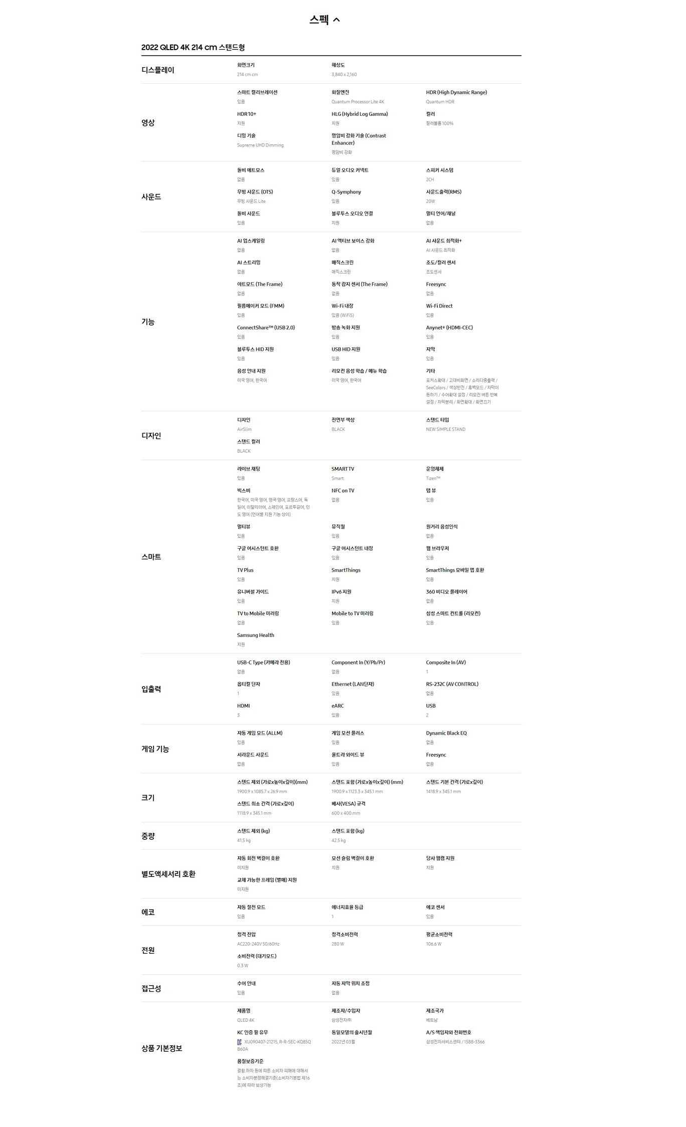 [삼성전자] QLED 4K TV KQ85QB30AFXKR(214cm) 스탠드형