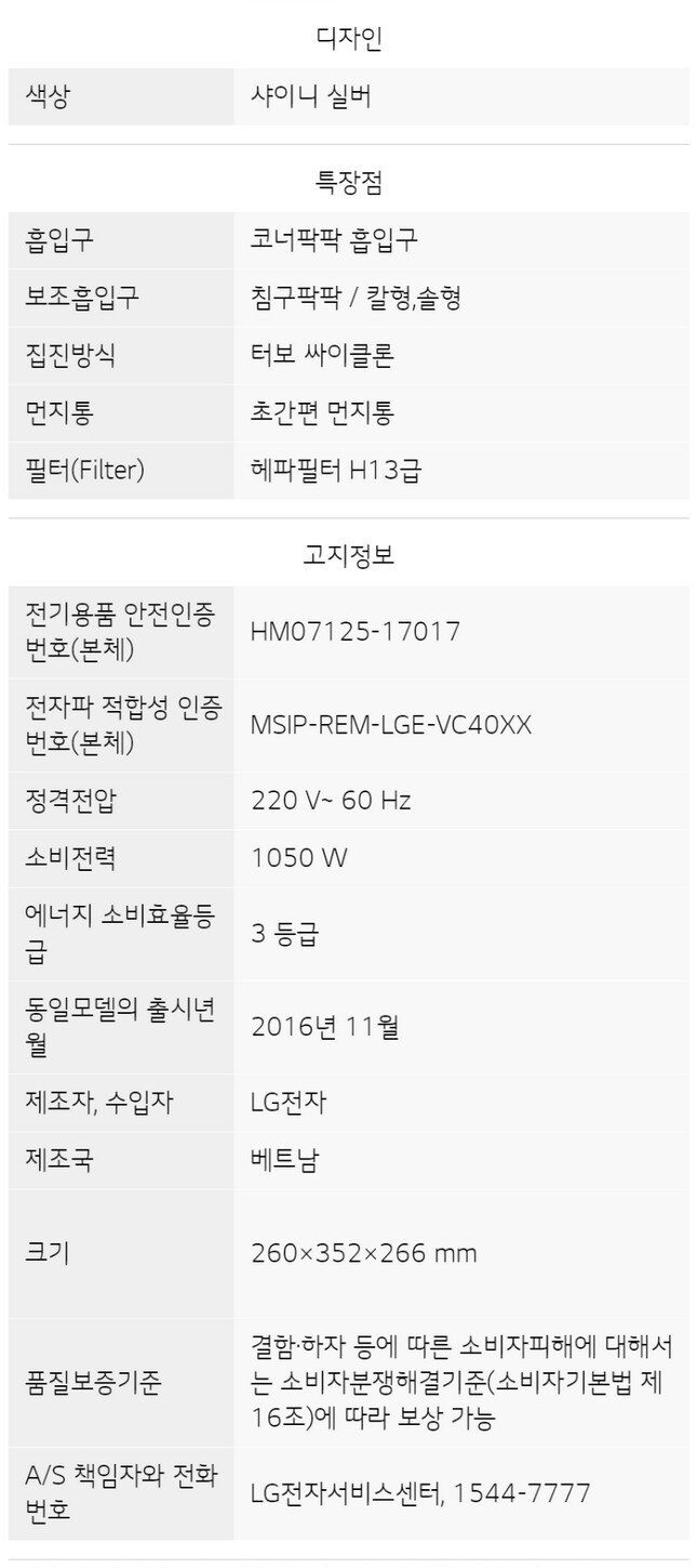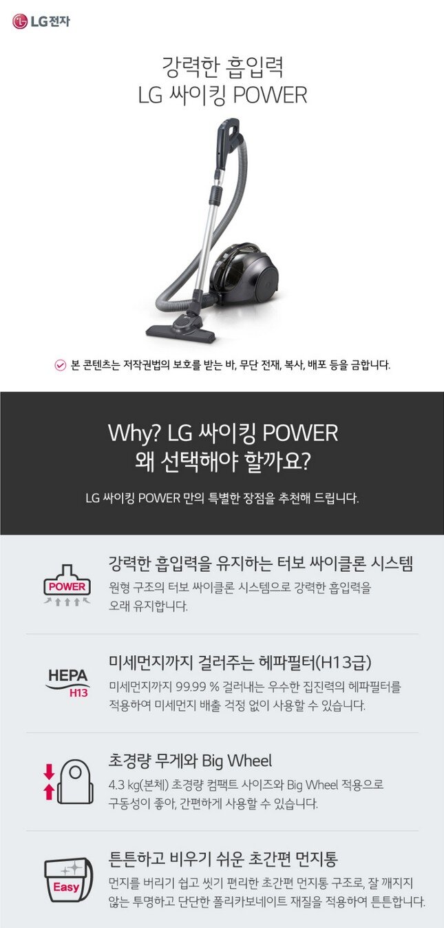 [LG전자] 유선진공청소기 싸이킹 POWER 코너팍팍 C40SGY [샤이니실버]