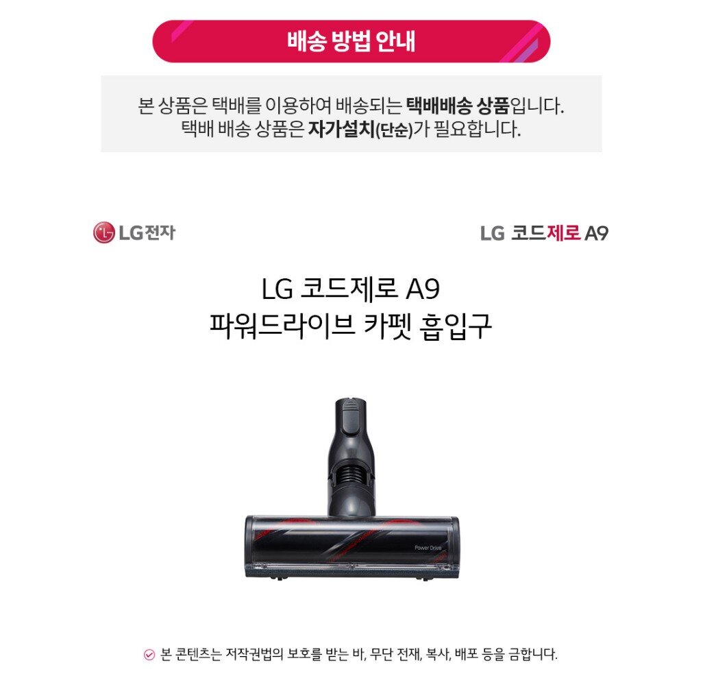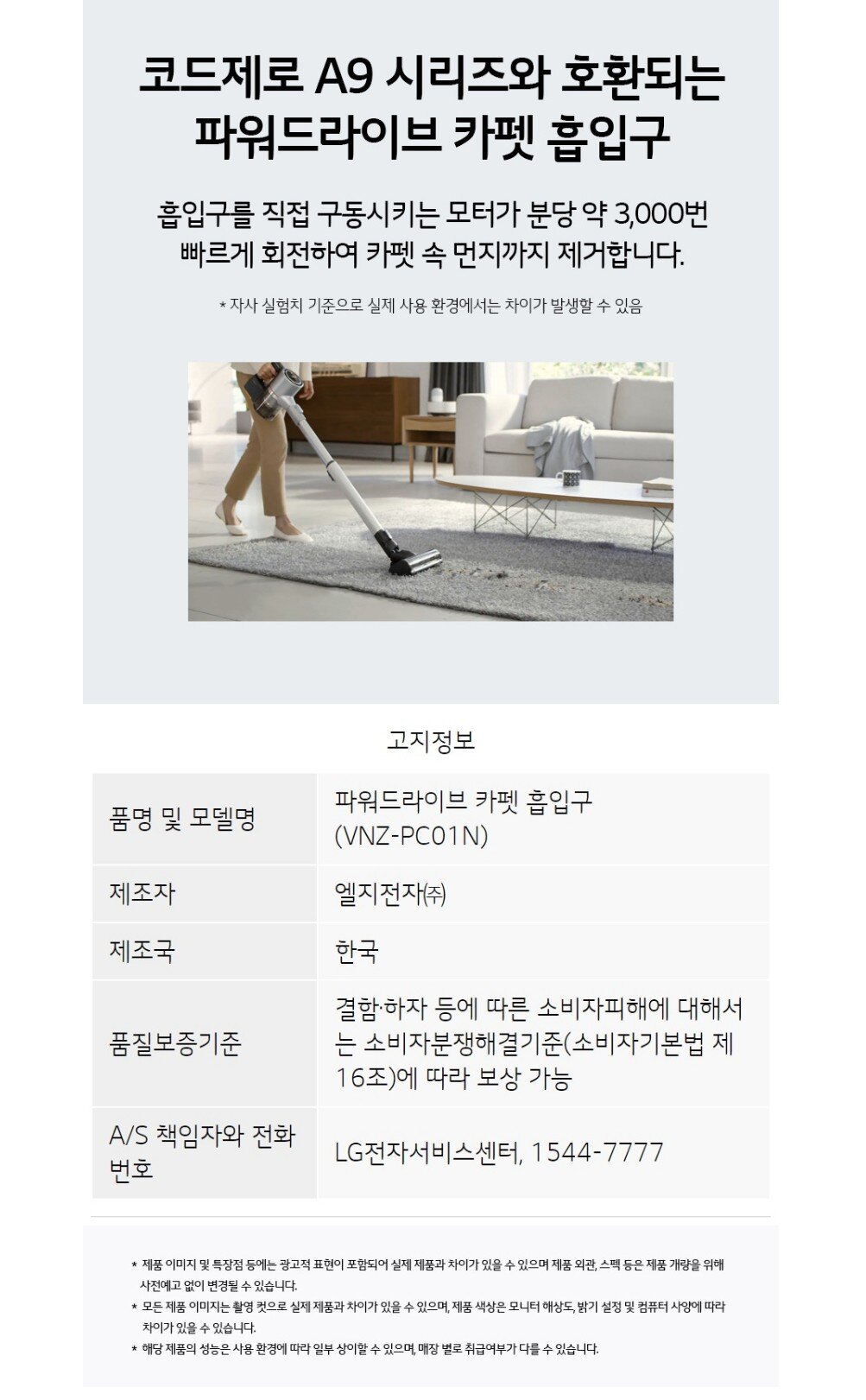 [LG전자] 코드제로 A9/A9S호환 파워드라이브 카펫 흡입구 VNZ-PC01N