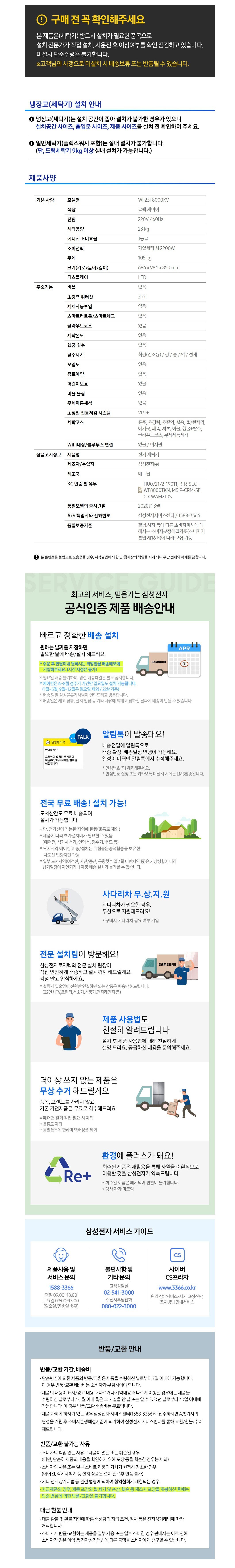 [삼성전자] 그랑데 버블워시 드럼세탁기 WF23T8000KV [세탁용량: 23kg] [삼성 공식인증점][전국 무료 배송 설치]