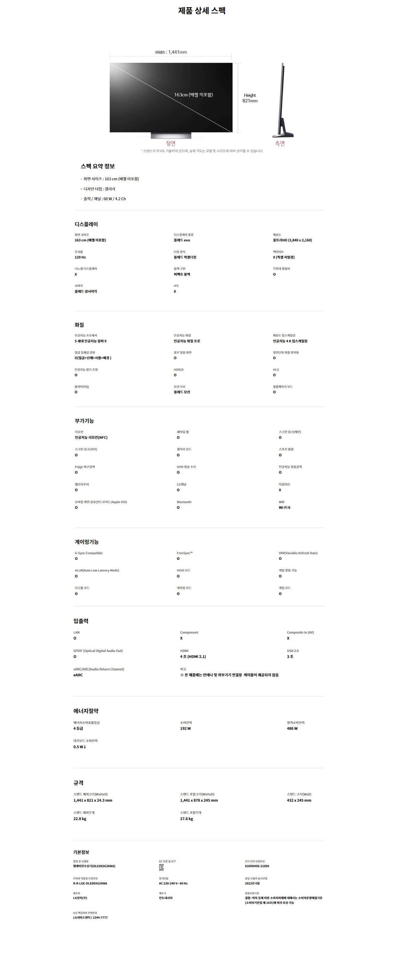 [LG전자] 163cm(65인치) OLED(올레드) TV evo OLED65G2KNA [스탠드]