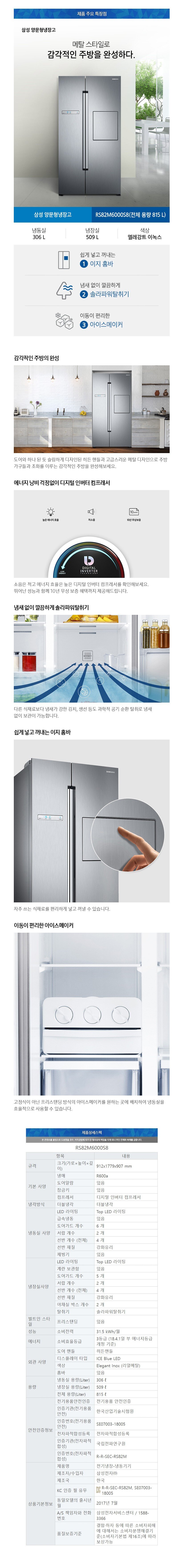[삼성전자] 삼성 양문형 냉장고 815 L RS82M6000S8