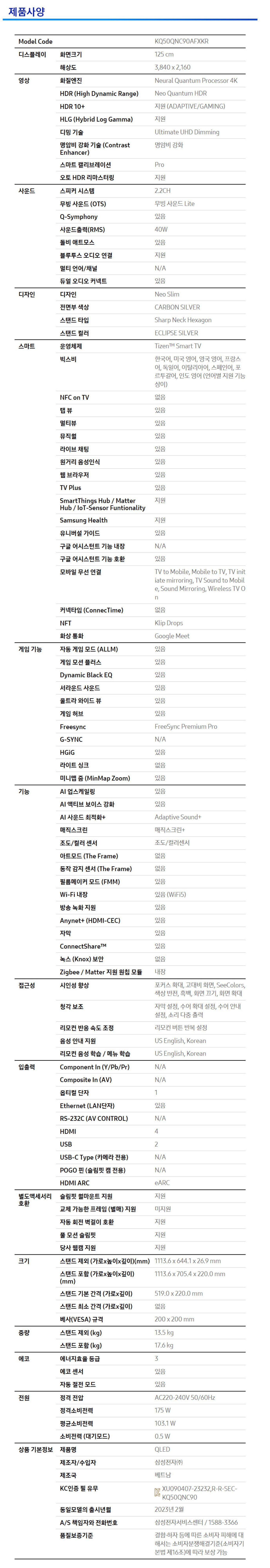 [삼성전자] 삼성 Neo QLED TV KQ51QNC90AFXKR 스탠드형[삼성 공식인증점] [전국무료배송] [기본설치비무료]