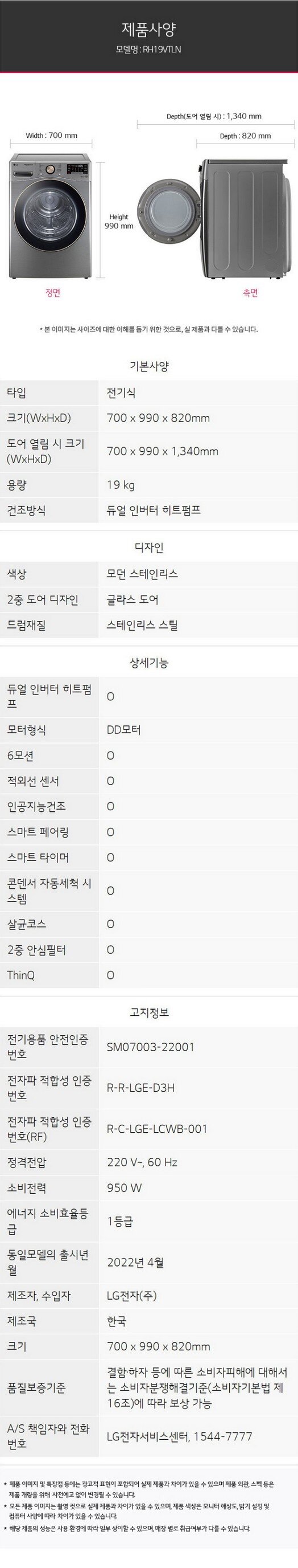 [LG전자] TROMM(트롬) 의류건조기 RH19VTLN 19kg