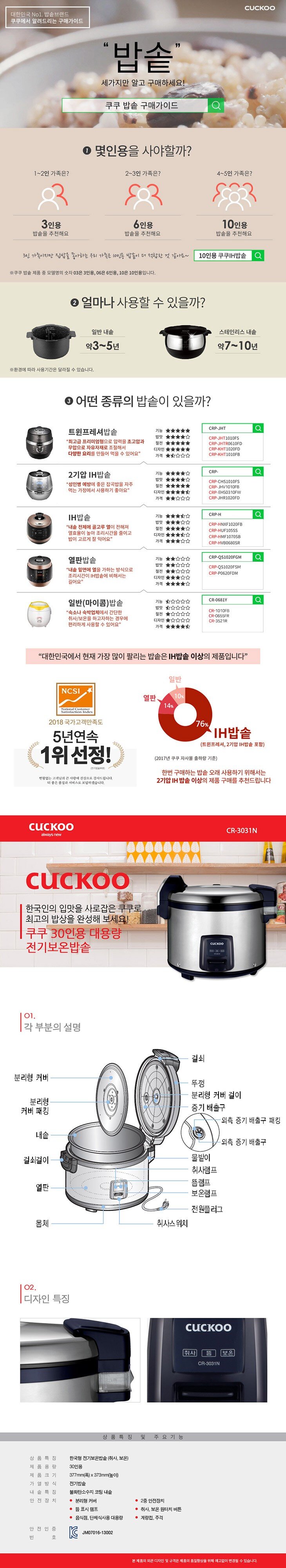 [쿠쿠전자] 쿠쿠 CR-3031N 30인용 전기보온밥솥 공식판매점 SJ
